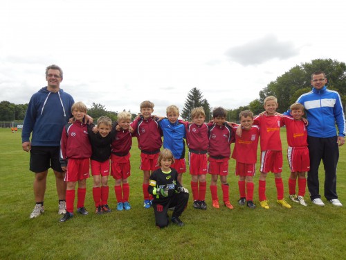 Nach dem Ende des Turniers am Samstag setzten wir uns in die Autos und fuhren in Richtung Leipzig. Für den Sonntag hatten wir uns für das Turnier bei TuS Leutzsch angemeldet. Da es an diesem Wochenende passte, wollten wir auch dort gleich zelten. Nach unserem Eintreffen sahen wir noch 2 Spiele unserer E-Jugend. Leider sah das Wetter nicht so gut aus und es war zu vermuten, dass wir wohl weckschwimmen werden. Doch nach Ende des E-Turniers regnete es nicht mehr. Wir bauten die Zelte auf und bereiteten das abendliche Grillen vor. Die Kinder spielten lieber Fußball auf den vorhandenen Plätzen. Nachdem sich die Kicker gestärkt hatten, ging es wieder auf den Platz und es wurde noch solange gespielt bis der Ball fast nicht mehr zu sehen war. Erschöpft kletterten die Kinder in unser Camp aus 7 Zelten und schliefen ein (Die Einen schneller als die Anderen). Am Sonntag gab es ein gemeinsames Frühstück und danach zog es die Spieler schon wieder aufs Feld. Ab 9:00Uhr konzentrierten wir uns wieder auf die anstehenden Spiele. Das Turnier wurde mit 12 Mannschaften in 2 Gruppen a 6 Mannschaften gepielt. Ein Spiel dauerte 10 Minuten. Unser erster Gegner war die Mannschaft von Red Bull Leipzig. Hier hatten wir Mühe ins Spiel zu kommen. Erst nach 7 Minuten kam etwas Ordnung in unser gesamtes Spiel und es ergaben sich Torchancen. Am Ende stand ein 0:0. Auch im Spiel gegen Roter Stern Leipzig waren wir nicht wirklich wach. Wir verteidigten über die gesamte Spielzeit das 0:0, was uns mit viel Glück auch gelang. Gegen TuS Leutzsch2 gelang uns nach gutem Spiel ein 3:1 Sieg. Gegen die Vertretung von MoGoNo Leipzig entwickelte sich ein Spiel auf Augenhöhe. Leider gab es eine Unachtsamkeit in der Abwehr die zum Siegtreffer der Leipziger führte. Im letzten Spiel gegen SG Rotation konnten wir die Chancen nicht in Tore verwandeln, so dass es hier auch am Ende 0:0 stand. Dadurch waren wir Punkt- und Torgleich mit Roter Stern Leipzig. Der dritte Platz der Gruppe wurde vom Punkt ermittelt. Wir konnten uns wieder auf Sophia verlassen die 2 Schüsse parierte. Somit waren wir in unserer Gruppe Dritter und ermittelten abermal vom Punkt gegen den Dritten den anderen Gruppe den Turnierfünften. Unser Gegner war der HFC. Nach dem insgesamt 14.Schützen hatte sich der HFC dann durchgesetzt. Wir haben in einem Klasse Turnier den 6.Platz erreicht.Wir gratulieren der Mannschaft von Red Bull Leipzig zum Turniersieg. Danke an die Organisatoren für die Möglichkeit bei Euch zu zelten und für die Einladung.Danke auch an die Eltern für die Unterstützung an diesem zurückliegendem Wochenende. Ohne Euch wäre vieles nicht möglich!Das Turnier bestritten für die Einheit:Sophia, Christian, Jassin, Malte(1), Louis, Tilmann, Quentin(1), Paul H., Tom, Hannes, Ben(1).Wir hoffen es hat allen Spass gemacht, auch wenn allen die Anstrengung am Ende anzumerken war.Eure Trainer